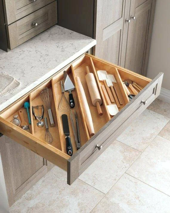The best layout for cutlery drawers includes dividers or trays to separate spoons, forks, knives, and other utensils. Group similar items together and place frequently used ones in the front for easy access.