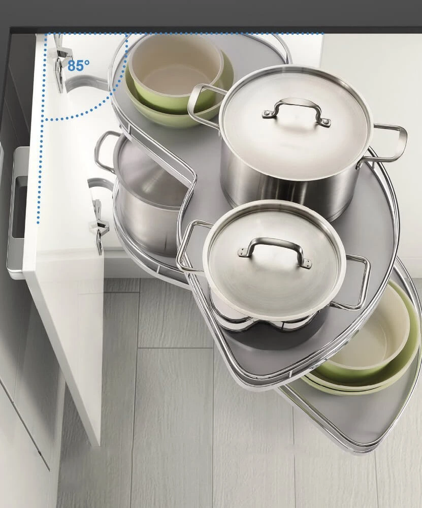 La Vetta Cucina provides high-quality magic corner units with smooth sliding mechanisms and durable materials. Our designs are tailored to fit your kitchen perfectly and optimize every inch of space.